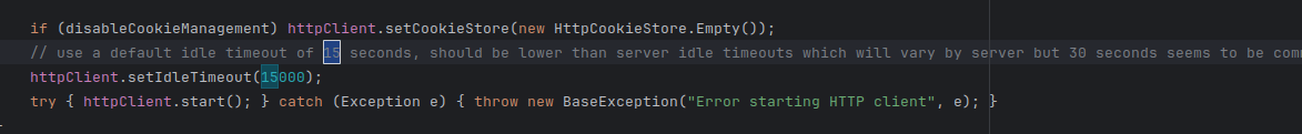 The screenshot you put seems to be from the SimpleRequestFactory constructor. That is the default timeout for the httpClient, but there is also a timeout per request, which can be set(see line 314: request.idleTimeout(timeoutSeconds > 30 ? 30 : timeoutSeconds-1, TimeUnit.SECONDS);).